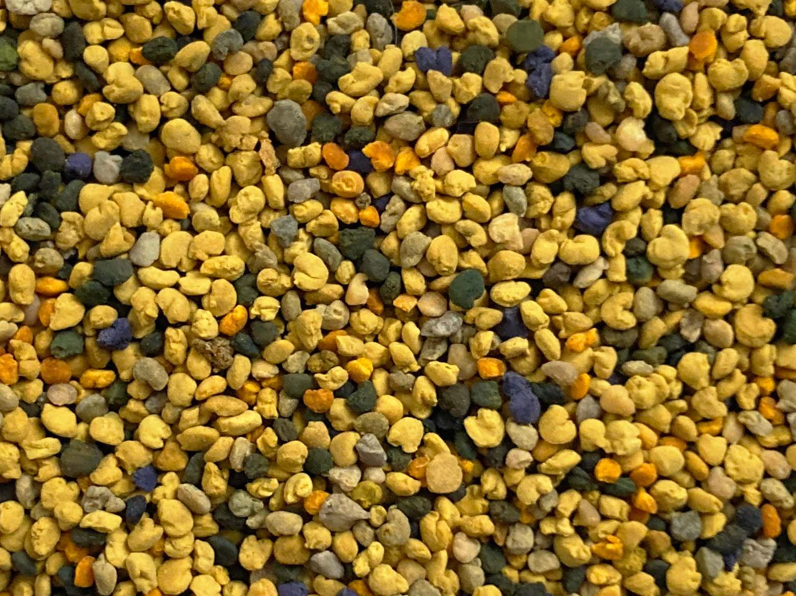 Pyłek pszczeli zwykle występuje w odcieniach żółtego, pomarańczowego, brązowego i wielu innych – w zależności od miejsca pozyskiwania i występujących na nim roślin. Dla przykładu: jeśli umiejscowimy rodzinę pszczelą wśród samej facelii, wówczas przyniosą pyłek w kolorze…niebieskim! Więcej o pyłku faceliowym pisaliśmy tu.